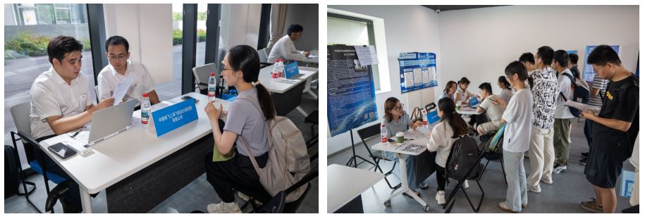 双选会现场人头攒动,应届生们带着简历与企业领导、技术骨干和招聘专员深入洽谈。中国商飞上飞院、航天八院803所、航发黎明公司、商飞时代等单位特意优化流程,组织多部门联合面试,实现“现场投递、即时沟通、精准筛选”的高效招聘。